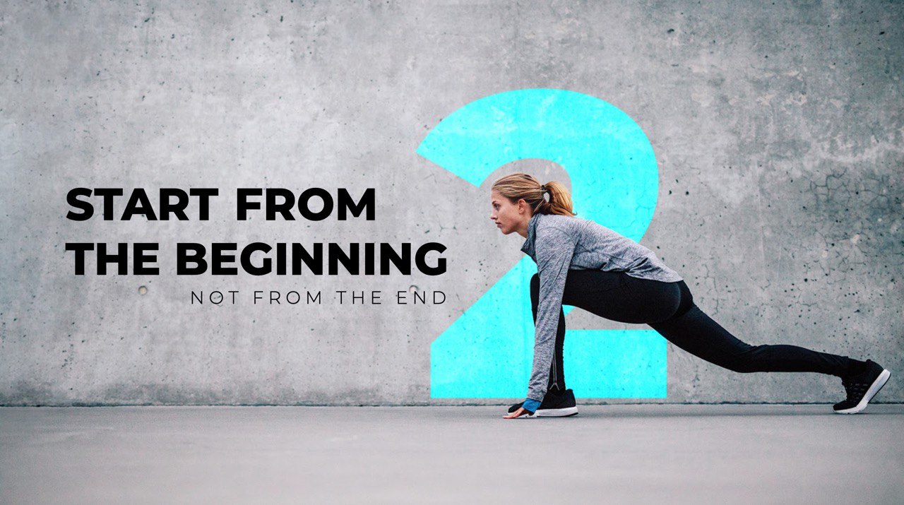 Проджект-менеджер одной айти-компании презентовал результаты работы по проекту (чёртов NDA). Речь шла о приложении для бега под Apple Watch. Поэтому на вижуале мы видим девушку, которая как раз готовится к пробежке. Смысловой посыл заголовка «Start from the beginning» хорошо коррелирует с разминкой перед бегом. Ну и располагаем текст по направлению взгляда, чтобы вижуал помогал нам управлять вниманием зрителя. #366perfectslides