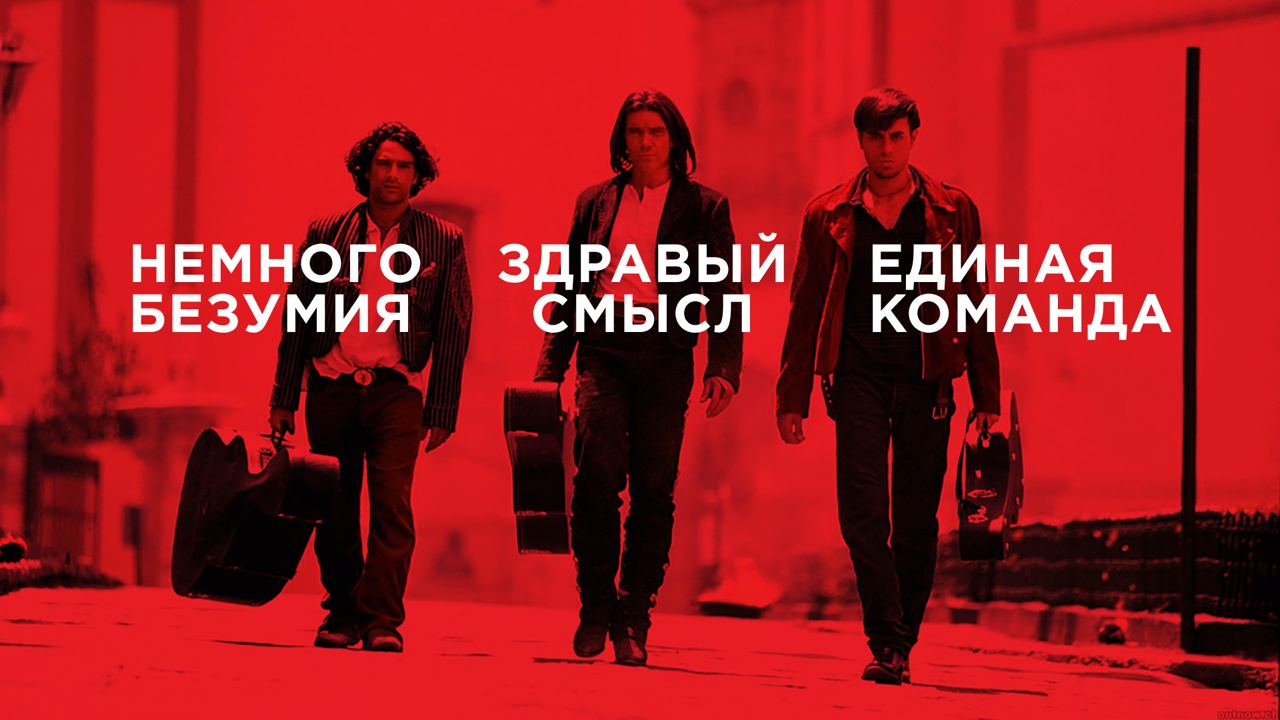 Згадав про легендарне кіно та стільове тріо. Знайшов кадр, обгорнув у червоний колір за брендбуком та додав три великі контрастні написи. Цікаво, що ці мачо як раз трохи шалені, в той же час зі здоровим глуздом та є єдиною командою