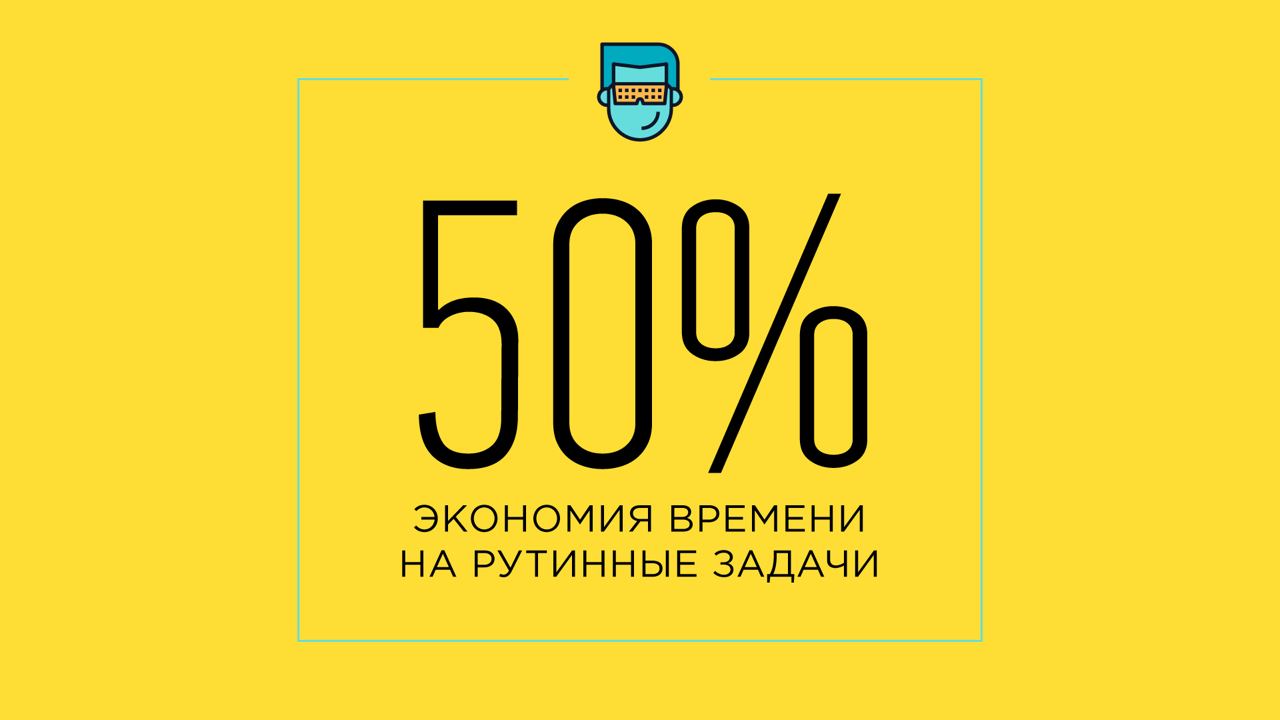 Слайд, який демонструє ефективність використання нашого скрипту. Саме тому я написав 50% величезним шрифтом. Важливо саме так показати, бо це суттєва економія часу: менше нецікавих та рутиних тасків — більше важливих та впливових. Ну і не завадить іконка задоволеного розробника, якому полегшили життя.