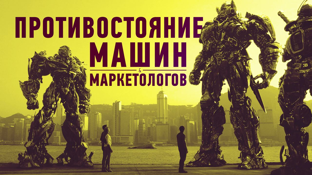 Тут мова йде про сучасний світ та протистояння маркетологів та машин: штучного інтелекту, бігдата, нейромереж тощо. Спірна дискусія чи залишаться потрібні взагалі ці маркетологи. Тому я знайшов світлину з фільму про трансформерів, де є власне маркетологи, є машини та добре показан масштаб протистояння.