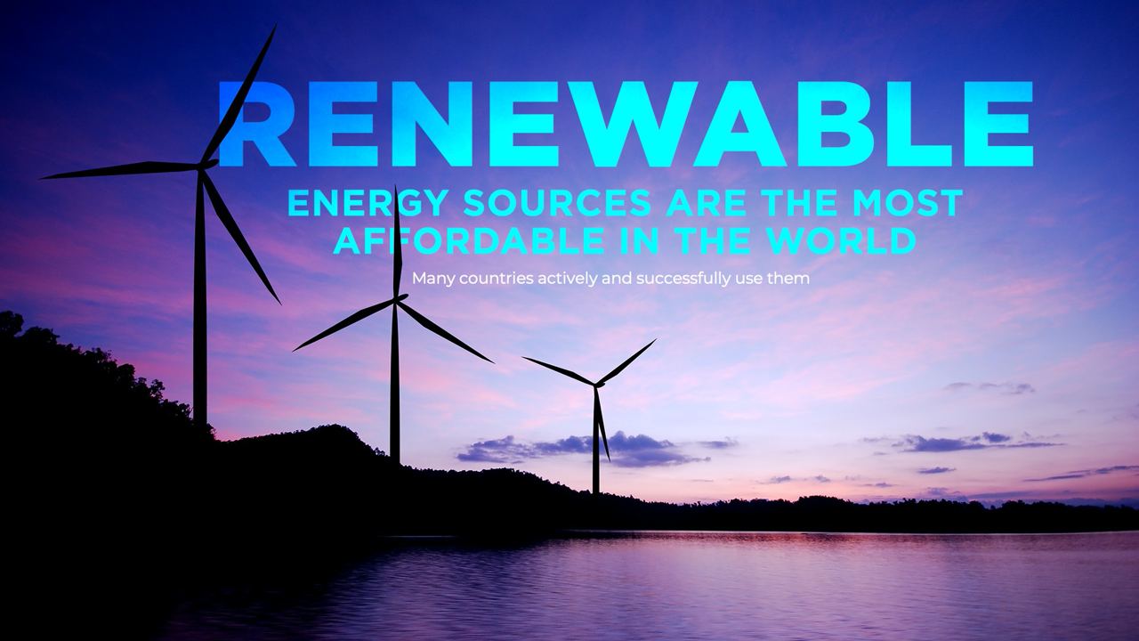 Слайд кричить, що відновлювані джерела енергії є найдоступнішими у світі. Моє завдання було підібрати релевантний, асоциативний та потужний віжуал та попрацювати з тіпографією, щоб все було читабельно та виглядало стильово.