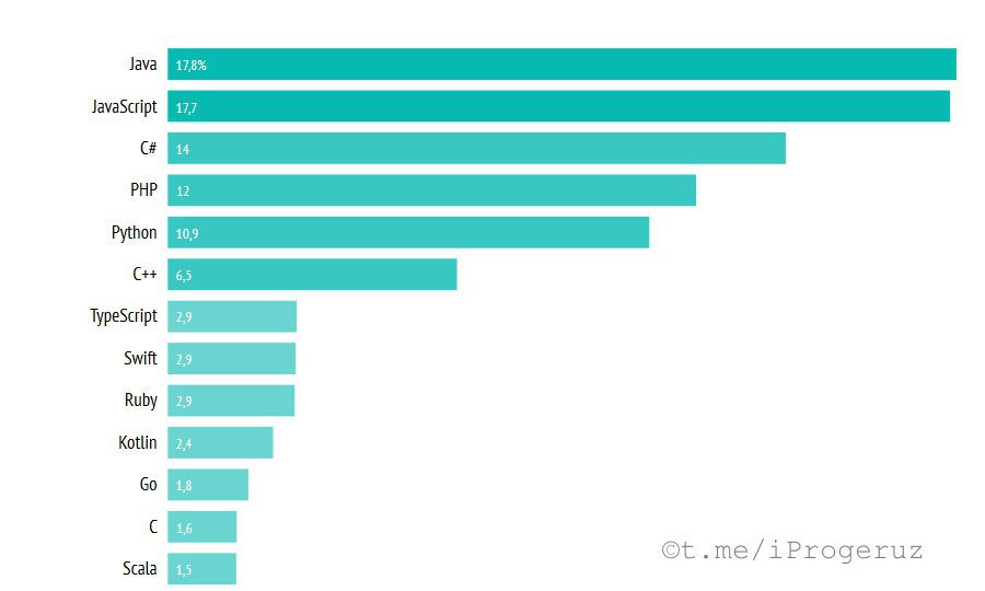 💻 2019-yilning eng yaxshi dasturlash tillari, qaysi dasturlash tilini tanlasam ekan deb yurganlar uchun kerakli fakt