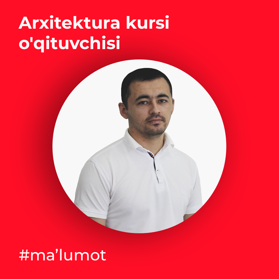 Arxitektura va binolar dizaynini kursimiz o'qituvchisi Mahmudbek Otaboyev. Urganch davlat universitetining Arxitektura fakultetini tamomlagan, soʻngra Toshkent Arxitektura va qurilish universiteti, shaharsozlik va landshaft fakulteti magistratura bosqichida ta'lim olgan.