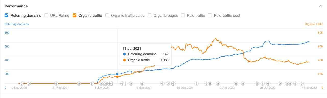 — В случае возникновения подозрений по поводу проблем с ранжированием, не поленитесь взглянуть на эволюцию ранжирования с 21 октября 2022 года на Sistrix, Semrush, Ahrefs.