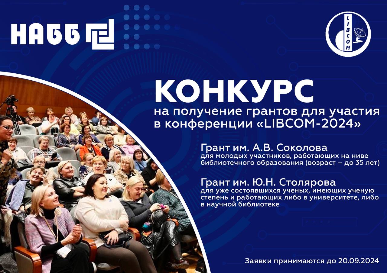 Национальная библиотечная ассоциация «Библиотеки будущего» объявляет конкурс на получение грантов для участия в Двадцать восьмой Международной конференции и выставке «LIBCOM–2024» «Информационные технологии, компьютерные системы и издательская продукция для библиотек», которая пройдет с 17 по 22 ноября 2024 года в г. Суздале.