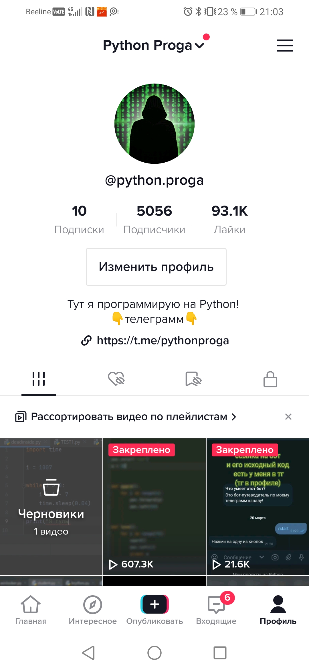 Ура, можете меня поздравить! У меня в тик-токе уже 5000 подписчиков. На самом деле их набралось ещё в субботу, но пост делаю только сейчас