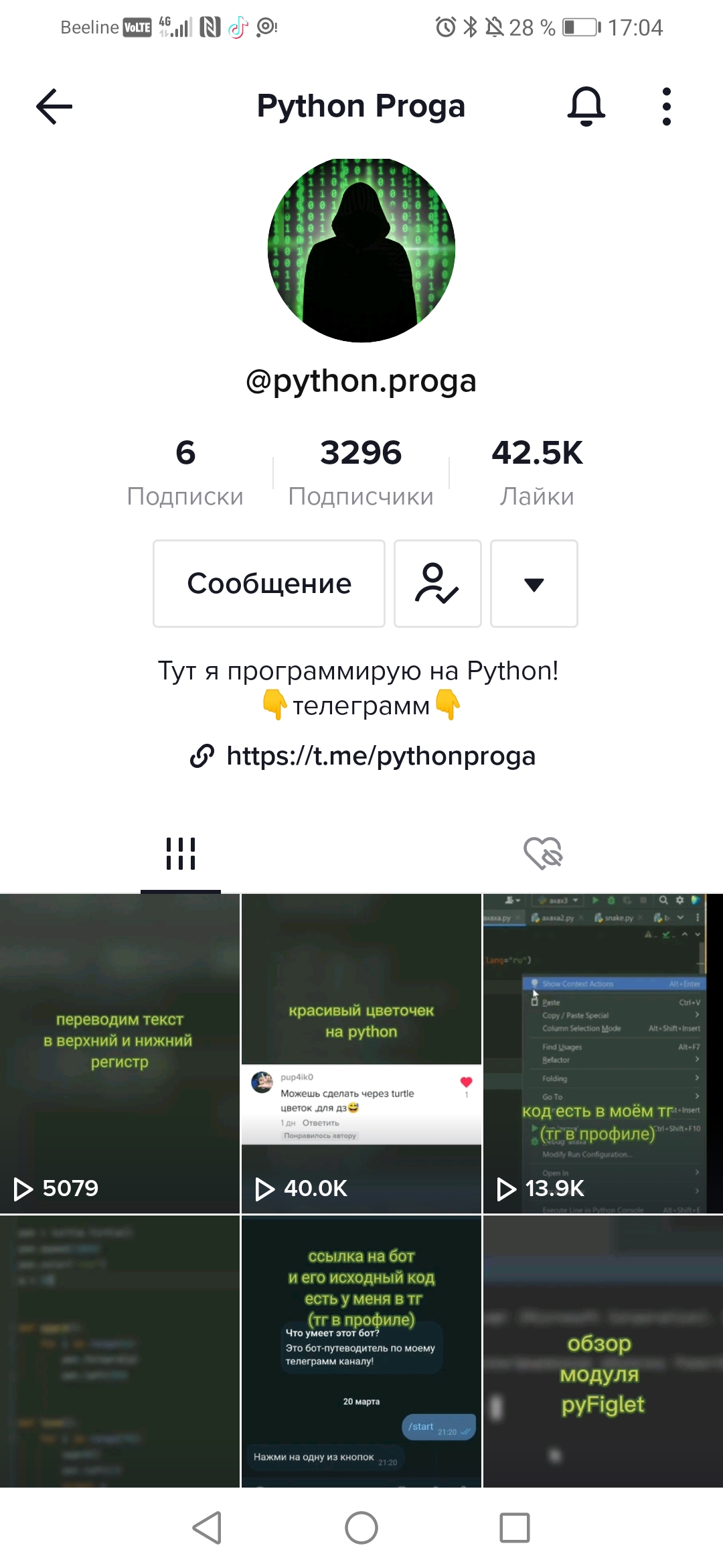 Вот так видете мой аккаунт в тик-токе вы: