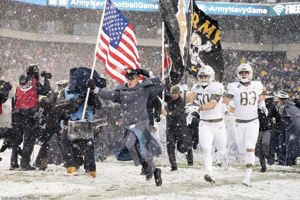 В США прошел ежегодный матч по футболу между командами Военной академии в Вест-Пойнте (Нью-Йорк) и Военно-морской академии в Аннаполисе (Мэриленд). Это весьма древняя традиция - впервые армия и флот встретились на поле в 1890 году. Трансляция по общенациональному телевидению, военно-патриотический угар, пафосные комментарии политиков (частенько матч посещают президенты), мы гордимся нашей армией и флотом, ура, ура, ура. В общем, всё как полагается.