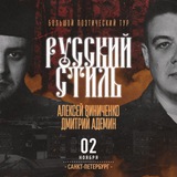 Завершающий концерт тура РУССКИЙ СТИЛЬ состоится 2 ноября в Петербурге. Алексей Виниченко и Дмитрий Адемин поделятся историями о том, как живет Россия и прочтут свои лучшие стихи.