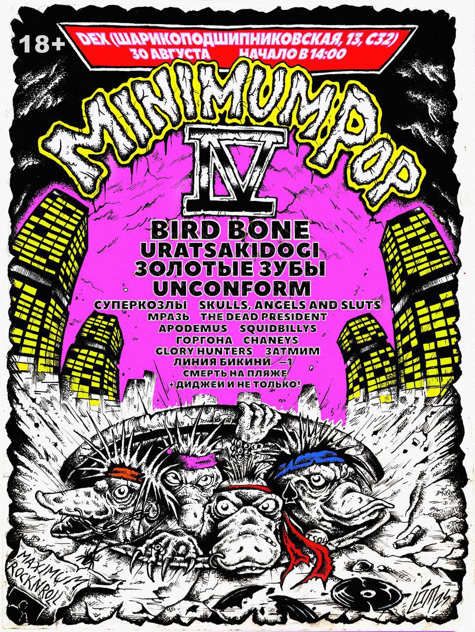 30 августа в Москве на Minimum Pop выступят Bird Bone, Золотые зубы, Суперкозлы, Uratsakidogi, Unconform и другие.