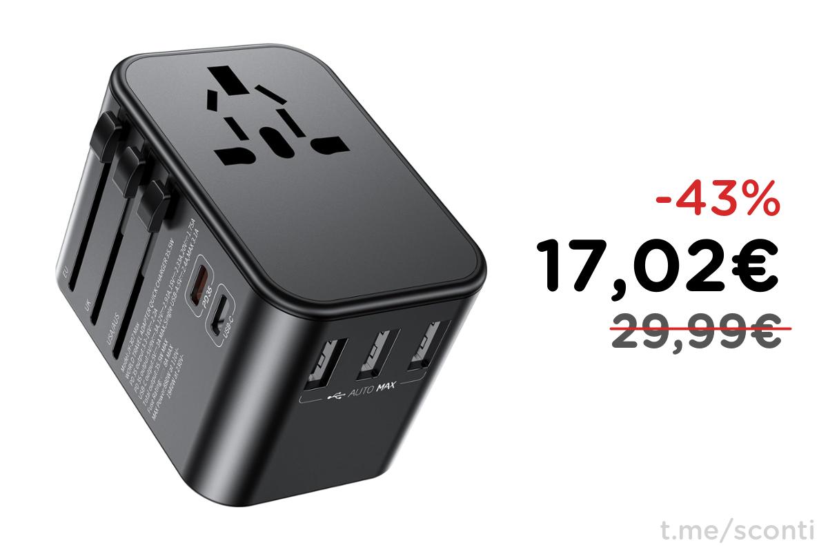 ๐ Adattatore da viaggio 35 W con 2 USB C e 3 USB-A