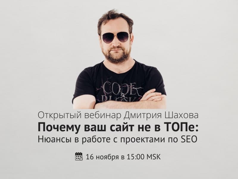 Интервью с Дмитрием Шаховым для сервиса SEOWORK: https://vc.ru/seo/314203-pro-seo-s-dmitriem-shahovym-problemy-nachinayutsya-togda-kogda-ty-upiraeshsya-v-potolok-mehanicheskih-vozmozhnostey