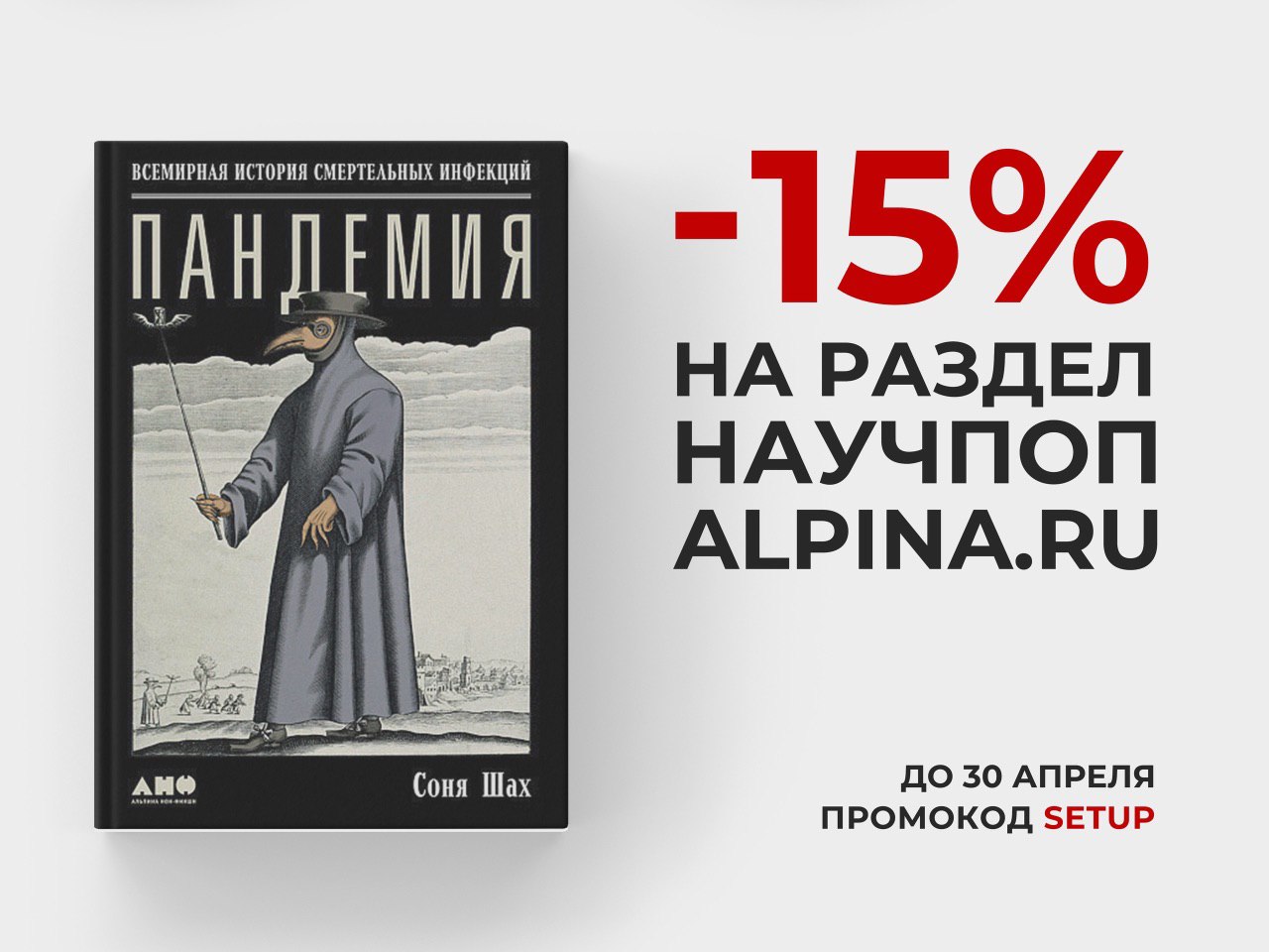 Наш интеллектуальный партнер Издательство Альпина нон-фикшн дарит скидку 15% на раздел «Научпоп» специально для наших подписчиков по ссылке: https://clck.ru/MfWZU