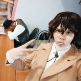 Ну и отдельно поплачусь о личном. Это должен был быть косплей на Дазая (очевидно), полночи было убито на то, чтобы привести в порядок парик, и даже успешно! Нооо... Уже утром выяснилось, как сильно другие светлые штаны (прошлые ужасно неудобные) не подходят к той жилетке, которая была в наличии🥲 Там прям до слёз: огромные бёдра (за счёт того, что брюки очень широкие) и малюсенький торс (жилет укороченный и обтягивающий, а более подходящий сейчас в процессе перешивания и ещё не готов)😭😭😭 А времени что-то решать уже не оставалось. Ну и пришлось резко отменять косплей🫠 разматывать бинты тоже было некогда и лень, так что остался недозакос на персонажа. Отстой.А в итоге ещё минут 15, за которые можно было что-то сделать, пришлось тупо ждать подругу на дубаке👎👎