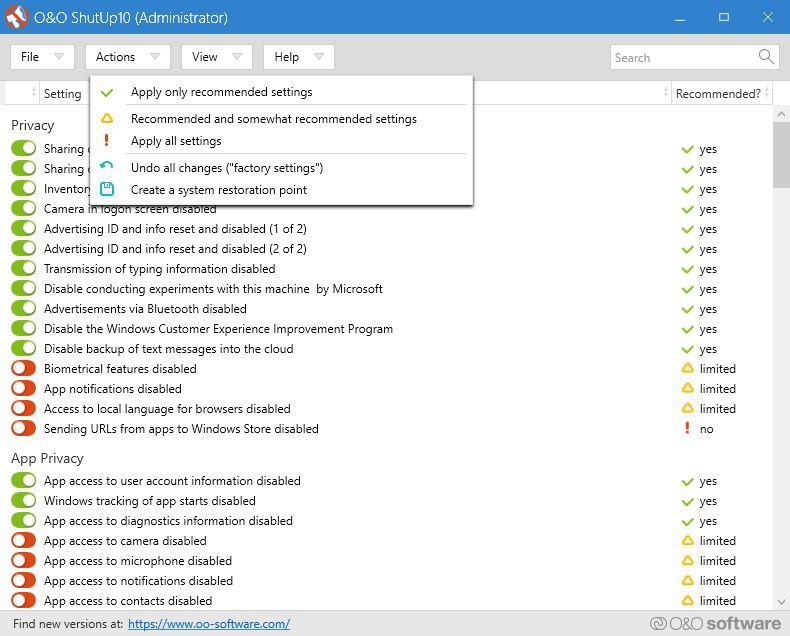 Інструмент конфіденційності Windows. O&O ShutUp10
