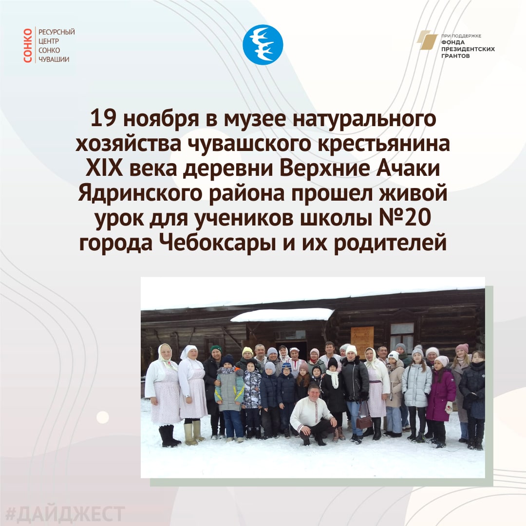 ⚡️19 ноября в музее натурального хозяйства чувашского крестьянина ХIХ века деревни Верхние Ачаки Ядринского района прошел живой урок для учеников школы № 20 города Чебоксары и их родителей.