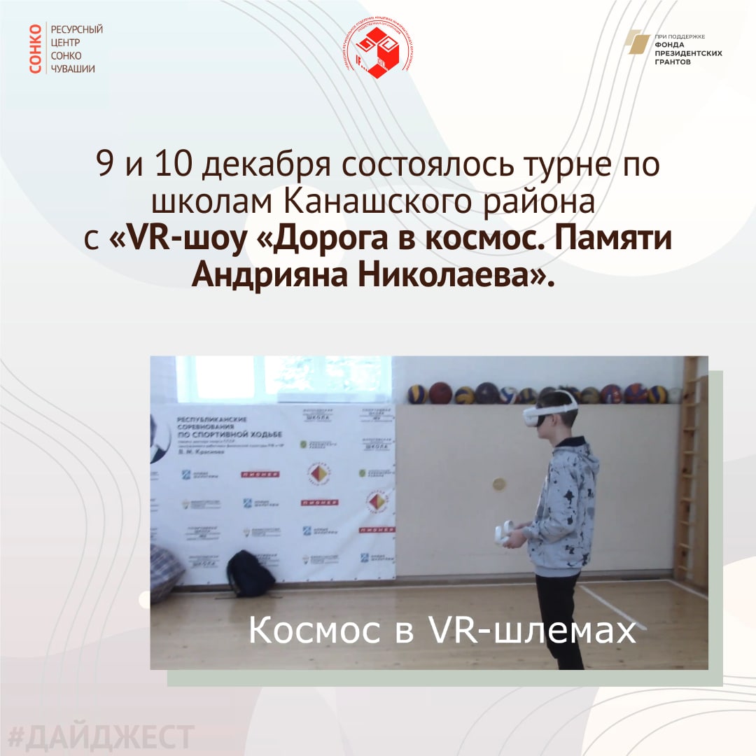⚡️Представители общественной организации дополнительного профессионального образования «Чувашское региональное отделение Академии информатизации образования» в рамках проекта «VR-шоу «Дорога в космос. Памяти Андрияна Николаева» 9 и 10 декабря выехали по школам Канашского района. Шоу провели в 4 школах, приняли в нем участие 202 школьника. О впечатлениях школьников и мнении учителей можно посмотреть в ролике видеоотчета по ссылке https://youtu.be/Ts20udr3-KY