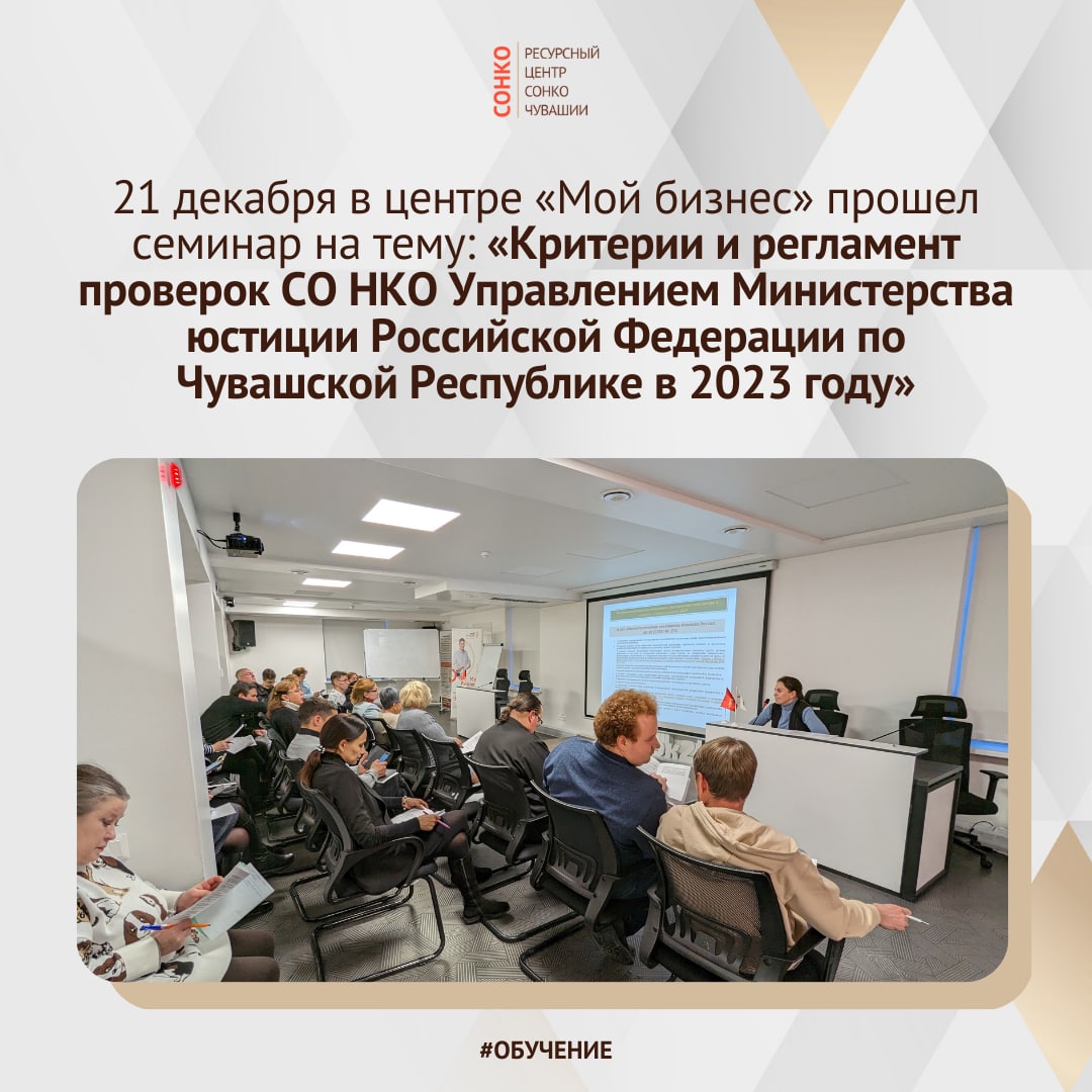 ⚡️21 декабря 2022 года в конференц-зале центра «Мой бизнес» прошел семинар на тему: «Критерии и регламент проверок СО НКО Управлением Министерства юстиции Российской Федерации по Чувашской Республике в 2023 году»