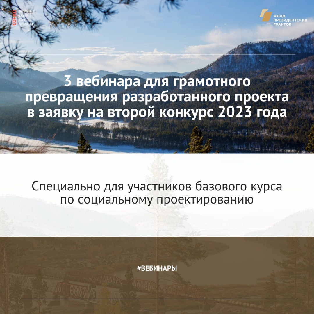 💭В период приема заявок фонд проведет 3 вебинара специально для участников базового курса по социальному проектированию. Команда департамента обучающих программ разберет типичные ошибки в проектировании, ответит на вопросы участников и расскажет, как грамотно превратить разработанный проект в заявку на второй конкурс 2023 года.