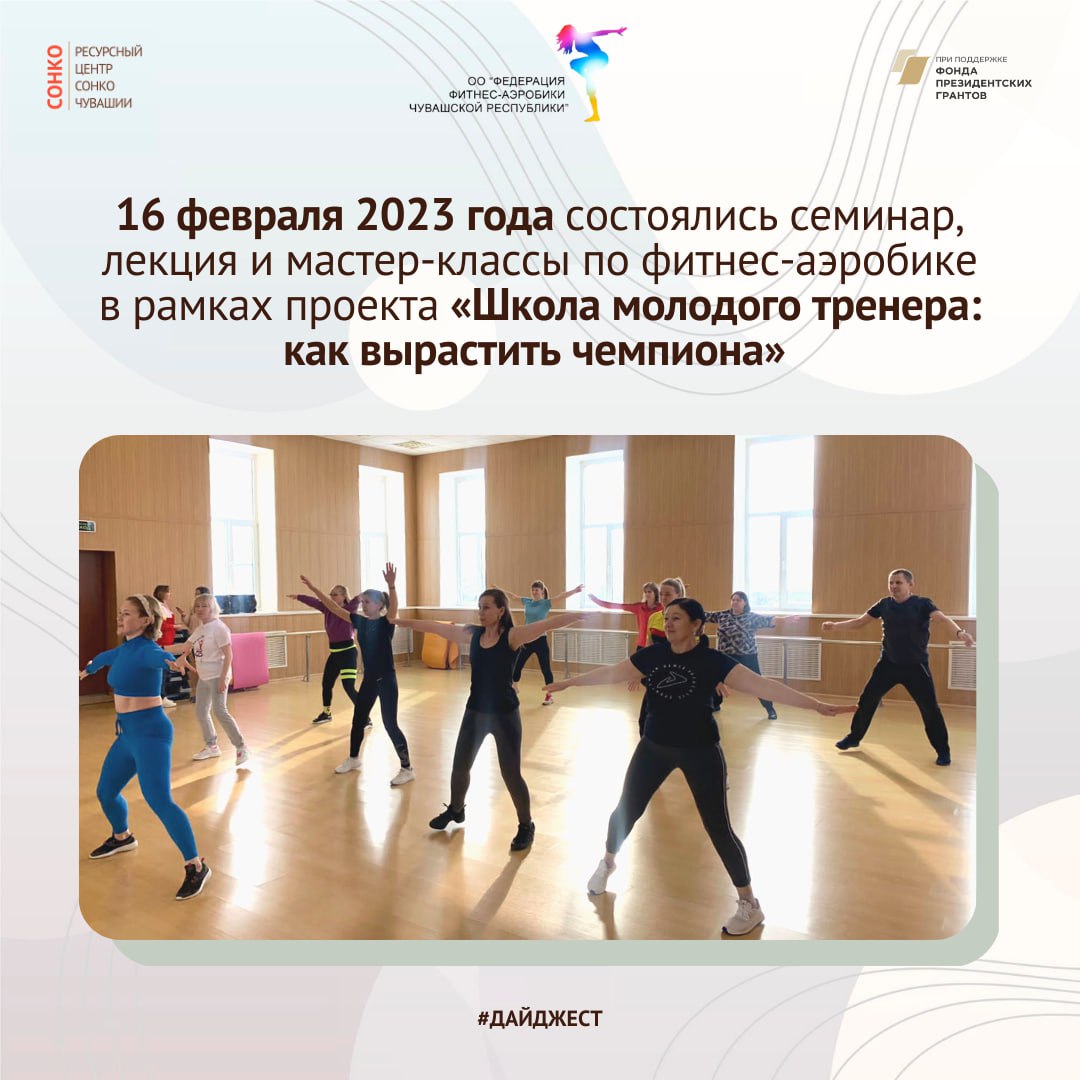 ⚡️16 февраля 2023 в п. Кугеси года состоялись семинар, лекция и мастер-классы по фитнес-аэробике в рамках проекта Федерации Фитнес-аэробики Чувашской Республики «Школа молодого тренера: как вырастить чемпиона».