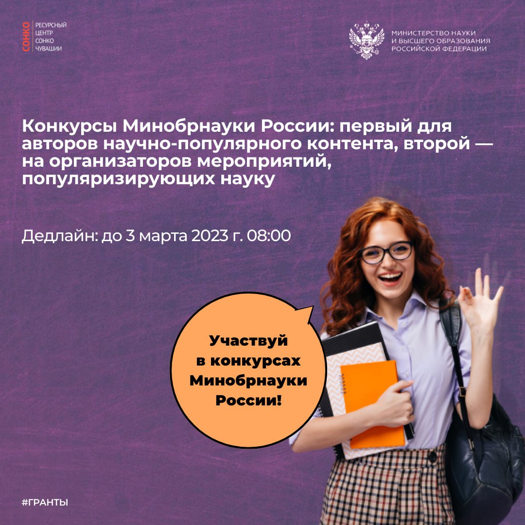 ⚡️Конкурсы Минобрнауки России: первый для авторов научно-популярного контента, второй — на организаторов мероприятий, популяризирующих науку