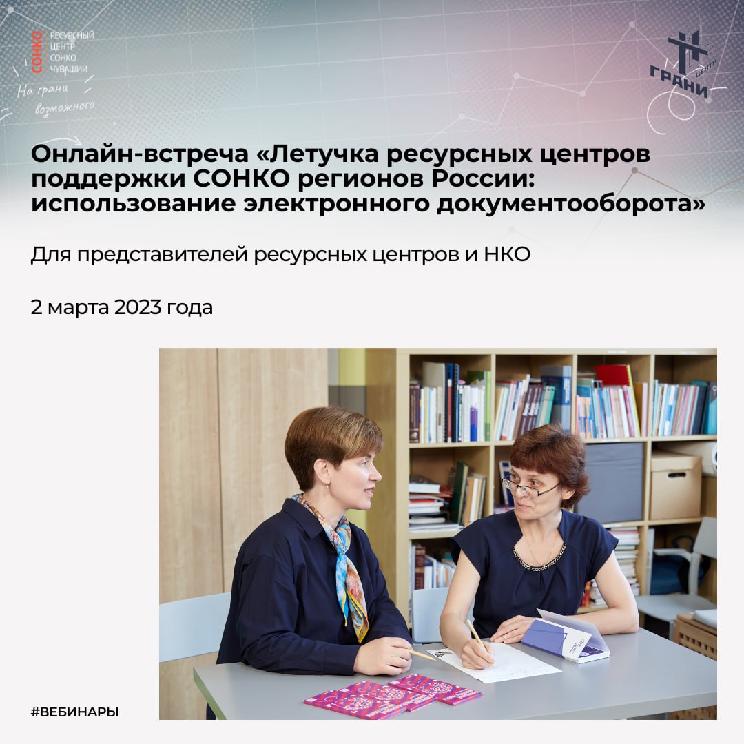⚡️Центр ГРАНИ приглашает представителей ресурсных центров и НКО 2 марта 2023 года принять участие в онлайн-встрече «Летучка ресурсных центров поддержки СОНКО регионов России: использование электронного документооборота»