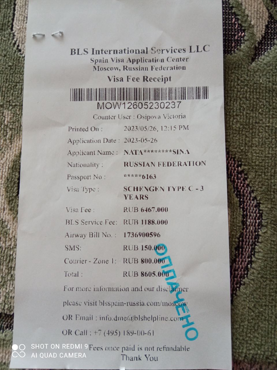 💰Итоговая стоимость 8605 рублей, туда входит консульский сбор, отпечатки пальцев и доставка курьером в подмосковье (см фото.)