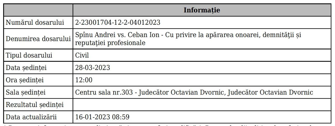 Prieteni, vă informez că adresarea mea în judecată împotriva Primarului General al mun. Chișinău, Ion Ceban, a fost pusă pe rol. Prima ședință de judecată va avea loc pe data de 28 martie 2023.