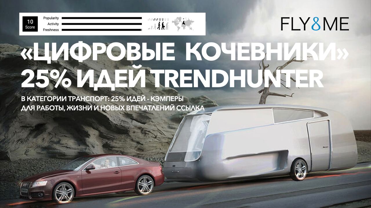 Так в Trendhanter - дома для цифровых кочевников - стала темой №1 в категории транспорта. До 25% идей в категории транспорт - это кэмперы для цифровых кочевников .