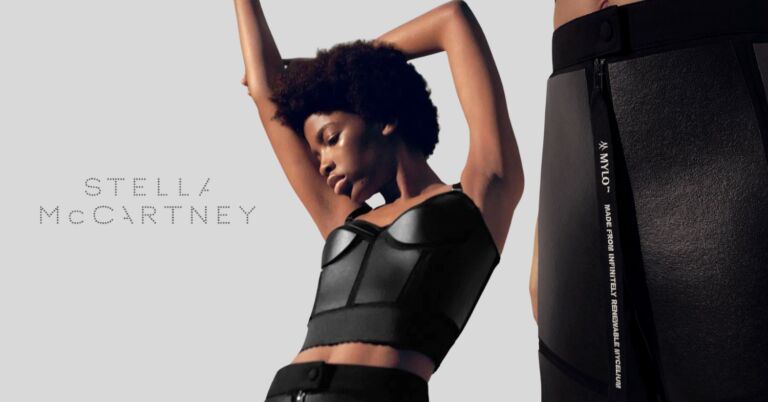 Стелла Маккартни создала пару инновационных предметов одежды из кожи грибов Mylo, в результате чего получилось кожаное бюстье и пара брюк, которые на 100% изготовлены на растительной основе. Говорят, что одежда из кожи грибов, созданная биотехнологической компанией Bolt Threads, выглядит, ощущается и драпируется так же, как кожа животного происхождения.