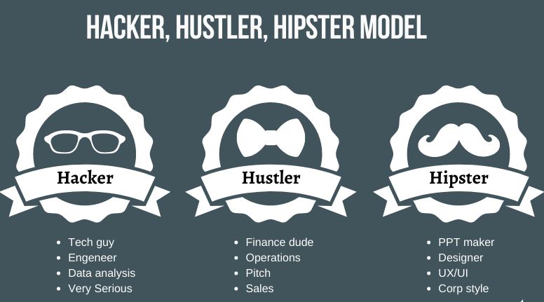 Как правило все роли объединить в одном человеке сложно. И наиболее устойчивые конструкции команд - формируется из 2-3-5 чел и далее 25 (у 4 чел очень много шансов разбиться на 2 пары). Подумайте кто в вашей команде - почему он с вами, что делает и как.