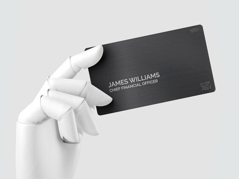 Смарт-визитка «SOLO Card» изготовлена из высококачественного металла, на котором можно выгравировать инициалы по вашему выбору, и предлагается в трех вариантах отделки, включая серебро, черный и золотой.