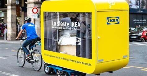 IKEA France выкатила восемь электровелосипедов и две кабинки для сна по всему Парижу. Эти передвижные капсулы сиесты приглашают парижан вздремнуть с 13:30 до 18:30. Эта программа была разработана для того, чтобы способствовать благополучию парижан, поскольку сон - и дремота - необходимы для здорового образа жизни.