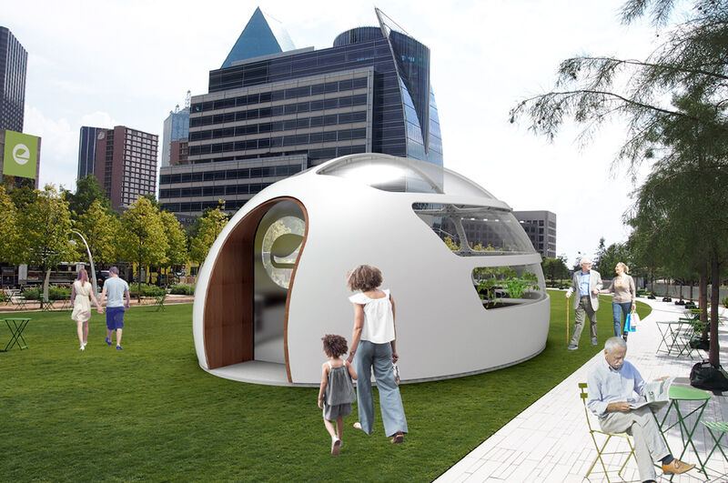 Концепция проекта возникла после года социальной изоляции. Для развития настоящих отношений между людьми из разных поколений общественная садовая капсула может похвастаться традиционными помещениями для встреч за пределами капсулы, чтобы способствовать человеческому взаимодействию. Внутри капсулы в ее центре закреплен большой остров. Коммунальные садовники могут возделывать висячие приспособления для растений и главный коммунальный участок травы, окружающий центральный стол.