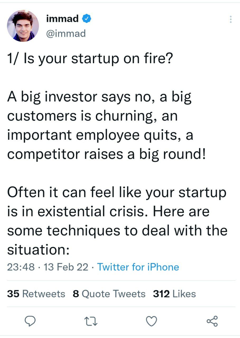 Вот такой необычный эмоциональный трэд. Но я решил им поделиться. Неожиданно, но он меня зацепил. Особенно пункт 4 выше – самое главное, что ситуаций пожара в жизни стартапа будет огромное множество. Самое главное – адекватно воспринимать такие ситуации, понимать, что это не плохо, а данность – и работать над разрешением проблем. Только так можно сделать что-то стоящее.