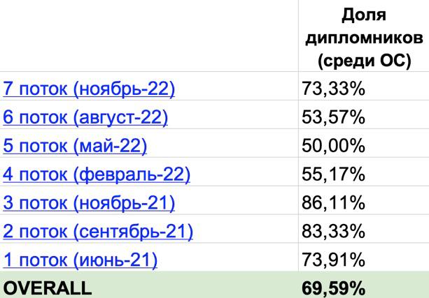 Почти 70% учеников, купивших у нас обучение по копирайтингу с обратной связью, дошли до диплома, получив зачёты по 6+ домашкам из 9. А домашки у нас не то чтобы тривиальные, некоторые приходится по 4-6 раз переписывать.