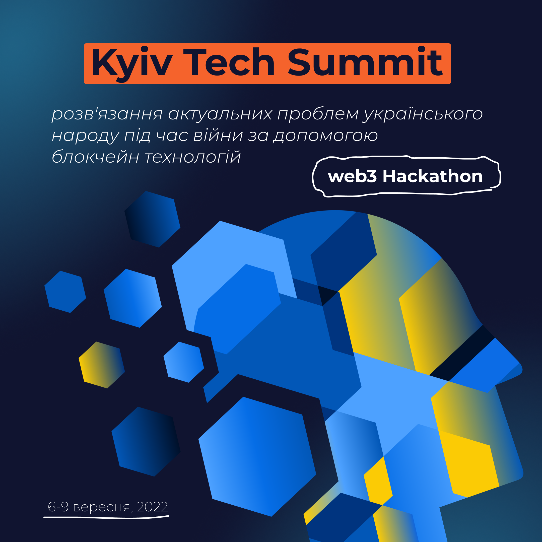 6-9 вересня благодійний блокчейн фонд Unchain Fund спільно з Ukraine DAO, метавсесвітом Atlantis World та Web3 активістами проведуть в Україні перший в своєму роді Web3 хакатон – Kyiv Tech Summit!