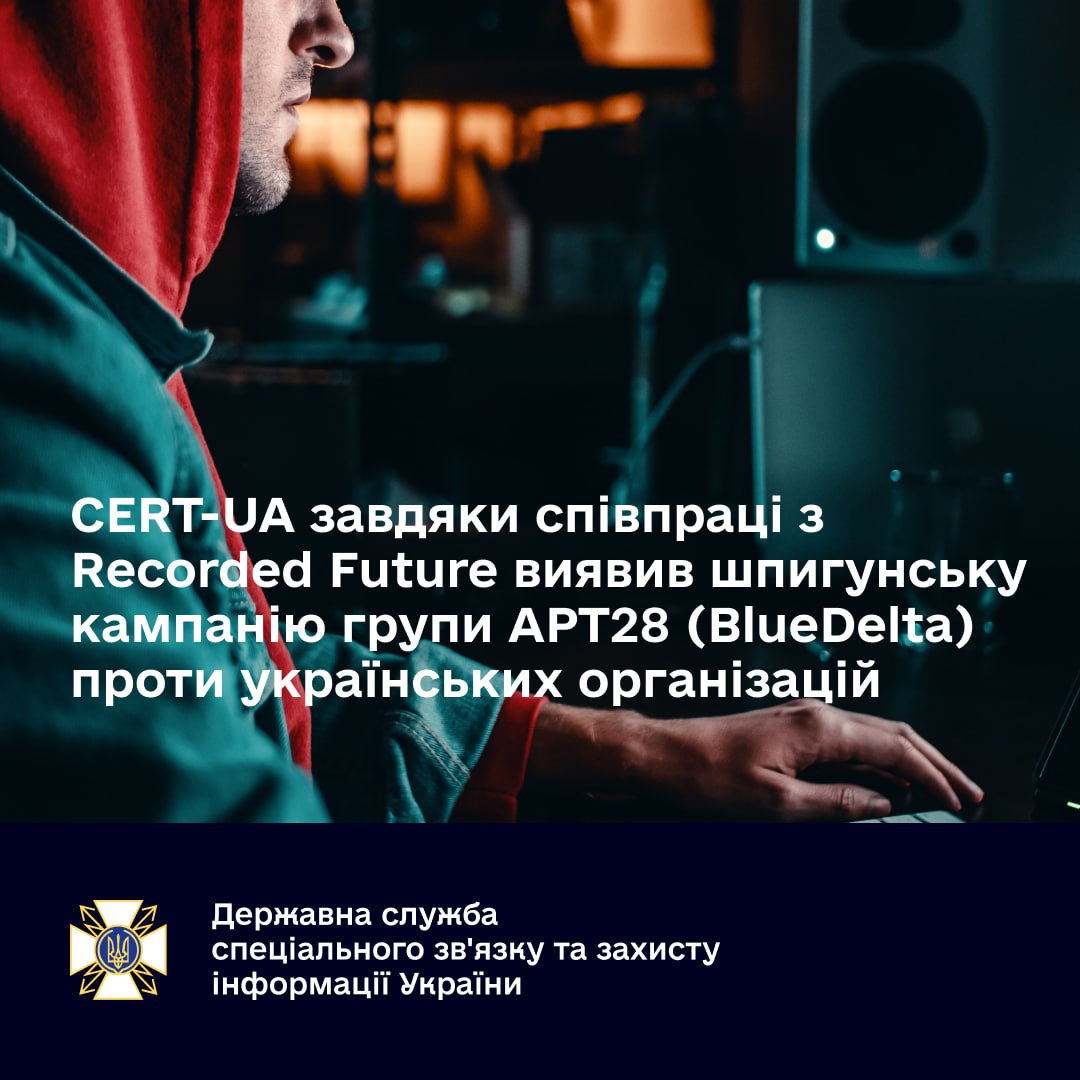 CERT-UA завдяки співпраці з Recorded Future виявив шпигунську кампанію групи APT28 (BlueDelta) проти українських організацій
