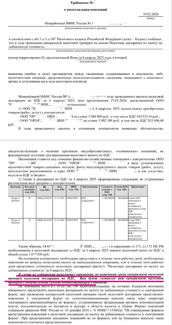 Важно❗Прямо не пишем, но намекаем, что в рамках требования по камеральной проверке у инспекции есть право требовать только пояснения (не документы).
