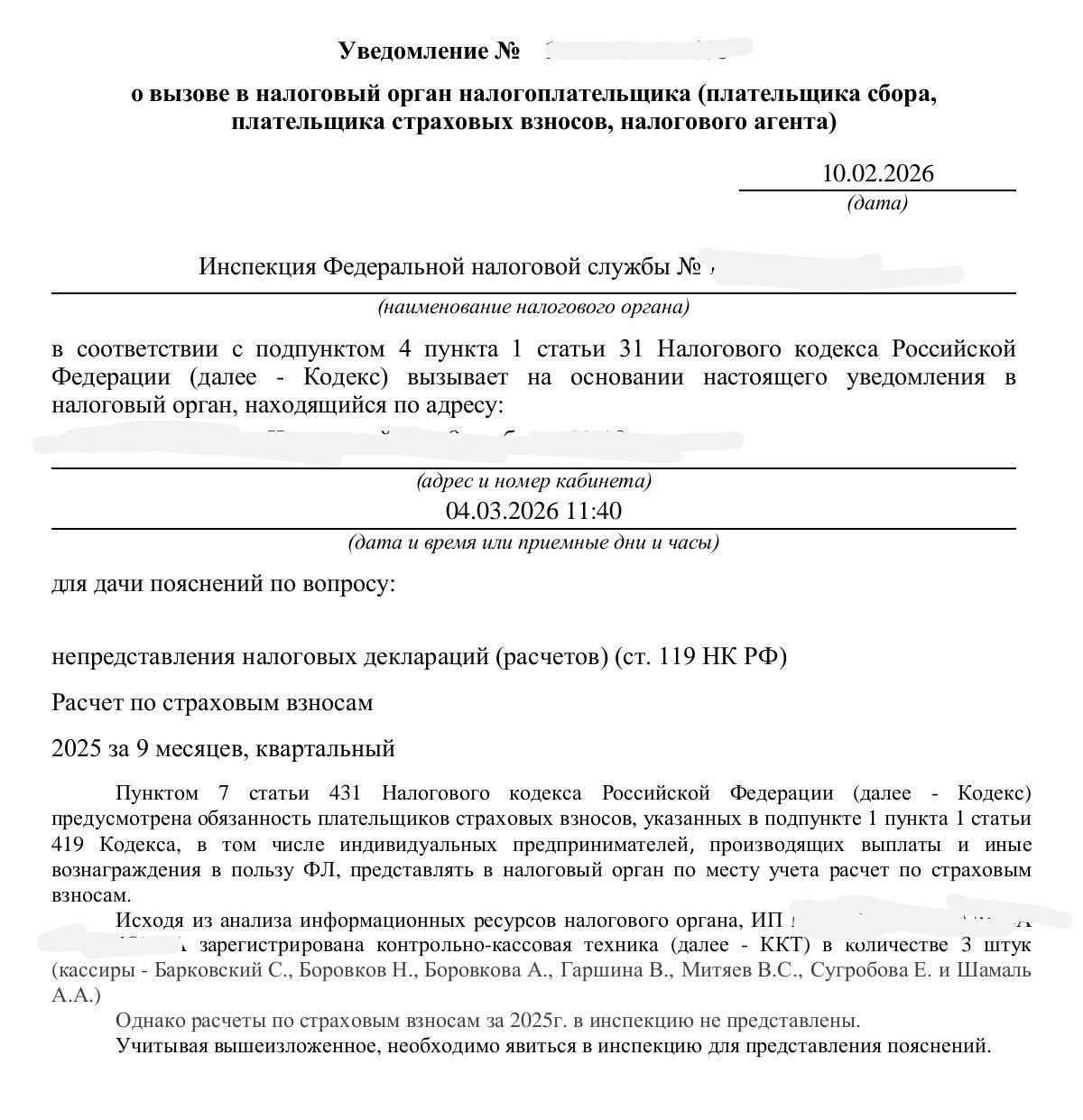 В Книге мы рассматриваем такой пример. Есть уведомление о вызове из налоговой, в котором список из 7 фамилий сотрудников, взятых инспектором из чеков ККТ предпринимателя. Инспектор, разумеется, интересуется, почему по этим людям не сдаются РСВ и 6-НДФЛ. И есть готовое решение, которое мы, в том числе, обсуждали на канале - сказать, что это были "тестовые" записи, созданные по ошибке при настройке кассы. Логичное объяснение, которое успешно использовалось в нашей практике. Но если бы мы применили его к данному конкретному уведомлению, то только еще больше утопили бы этого ИП в его проблемах🫨