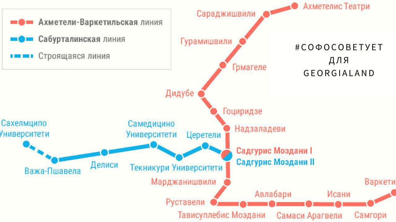 1️⃣ Метрополитен функционирует с 1966 года. Линий две: первая линия, на которой 16 станций (Ахметели-Варкетилская) и линия Сабуртало (7 станций). Единственная пересадочная станция - Садгурис моэдани 🚇